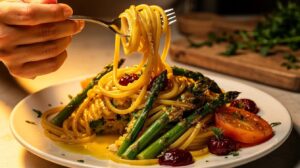 At table, it pairs naturally with a plate of sourdough with cultured butter, a smoked salmon blini or a simple dressed asparagus — the asparagus connection is one Scotto returns to often, and with good reason. The drink also holds its own alongside a raw bar moment: oysters on ice, a little mignonette, the brine of the sea meeting the brine of the forest. For a non-alcoholic companion, a cold infusion of cucumber, lemon thyme and a pinch of salt over ice carries a similar mineral freshness.
