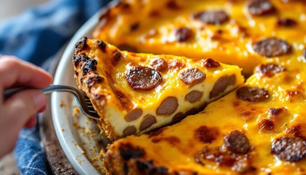 The bacon can be replaced with pancetta for a milder, less smoky result, or omitted entirely in favor of a larger quantity of caramelized onions and roasted mushrooms for a vegetarian version. Sharp cheddar can be swapped for Gruyère, smoked gouda, or a combination of both. In spring, thin slices of blanched asparagus or halved cherry tomatoes fold naturally into the custard layer. For the crust, a store-bought refrigerated pie dough works as a practical substitute when time is short — the structural result is slightly less flaky but entirely functional.