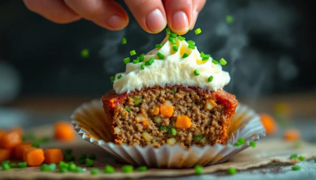 Piped and assembled cupcakes keep in the refrigerator for up to 3 days in an airtight container. The potato topping will lose its sharp piped edges overnight but remains entirely edible. Reheat in a microwave for 60–90 seconds, or in a covered dish in a low oven at 300°F (150°C) for 12 minutes. Freezing is possible for the meatloaf portion only — freeze before piping, then defrost overnight in the fridge and add fresh mashed potato topping before serving.