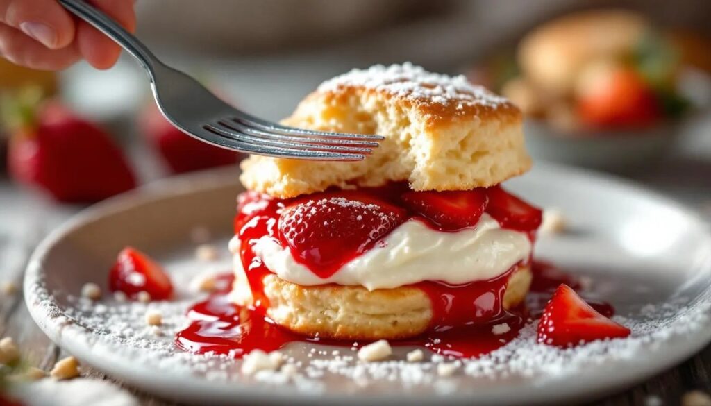 Late March in the American South brings the first strawberries to farm stands along the highway — small, fragrant, and stained red all the way through, unlike the pale, oversized berries shipped from California in January. This is when strawberry shortcake evolves from a nostalgic idea to something worth making right. The version I learned in a Nashville kitchen belongs to a tradition most home bakers overlook. It skips the sponge cake and builds its foundation on a buttermilk drop biscuit — the kind often left on trays at church potlucks because it seems too plain, humble, and forgotten.